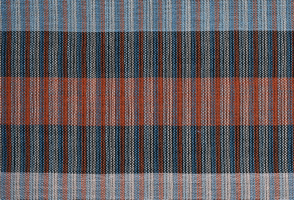 Her textiles are restrained and architectural. Grid, subtle shifts in tone, and tactile surfaces that reveal their complexity only upon close inspection.